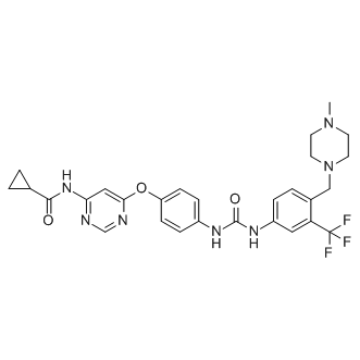 SMILES: CN1CCN(CC1)CC2=C(C=C(C=C2)NC(=O)NC3=CC=C(C=C3)OC4=NC=NC(=C4)NC(=O)C5CC5)C(F)(F)F